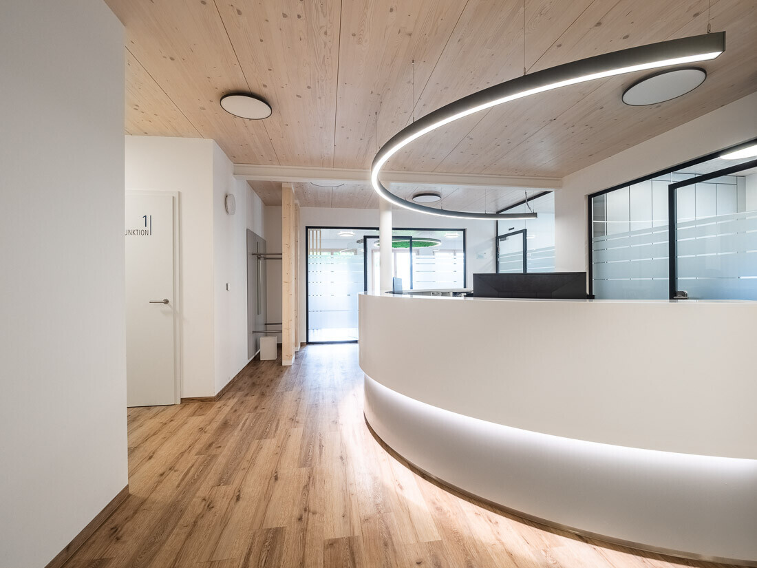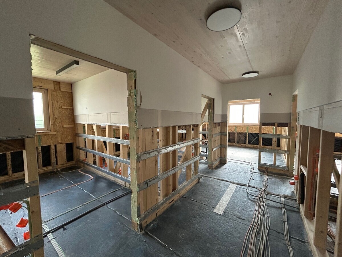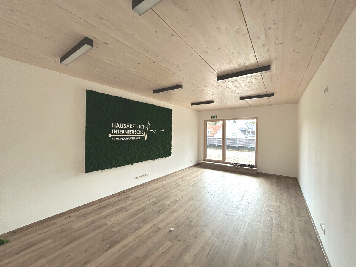 Dieses herrliche Gebäude in Holzständerbauweise eines regionalen Herstellers ist erst wenige Jahre alt. Es wurde als hausärztliches Versorgungszentrum konzipiert und errichtet. Dann kam das extreme Hochwasser 2024 und das Praxisteam musste eine neue Immobilie suchen, denn für eine Arztpraxis in diesem Umfang wollte der Versicherer die Verantwortung nicht mehr tragen.