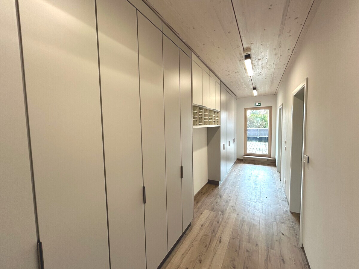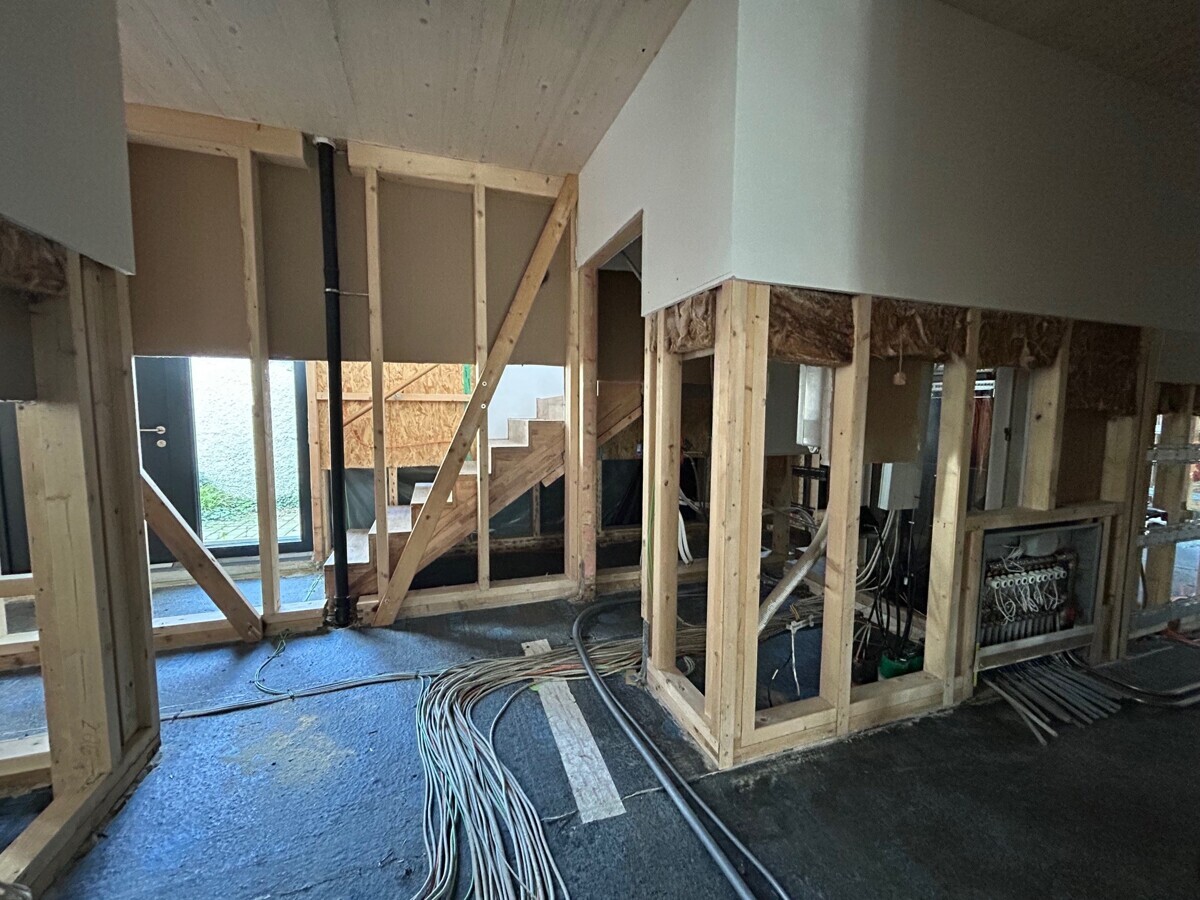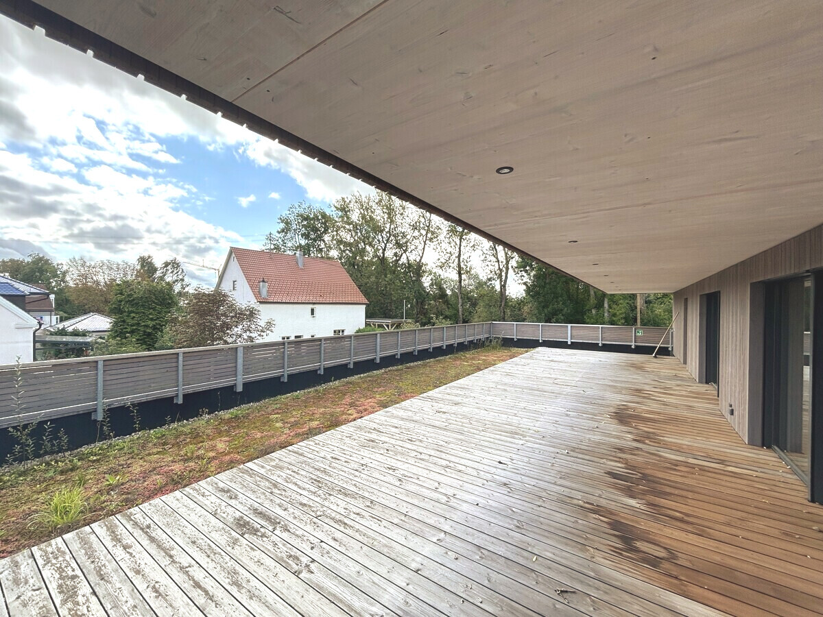 Dieses herrliche Gebäude in Holzständerbauweise eines regionalen Herstellers ist erst wenige Jahre alt. Es wurde als hausärztliches Versorgungszentrum konzipiert und errichtet. Dann kam das extreme Hochwasser 2024 und das Praxisteam musste eine neue Immobilie suchen, denn für eine Arztpraxis in diesem Umfang wollte der Versicherer die Verantwortung nicht mehr tragen.